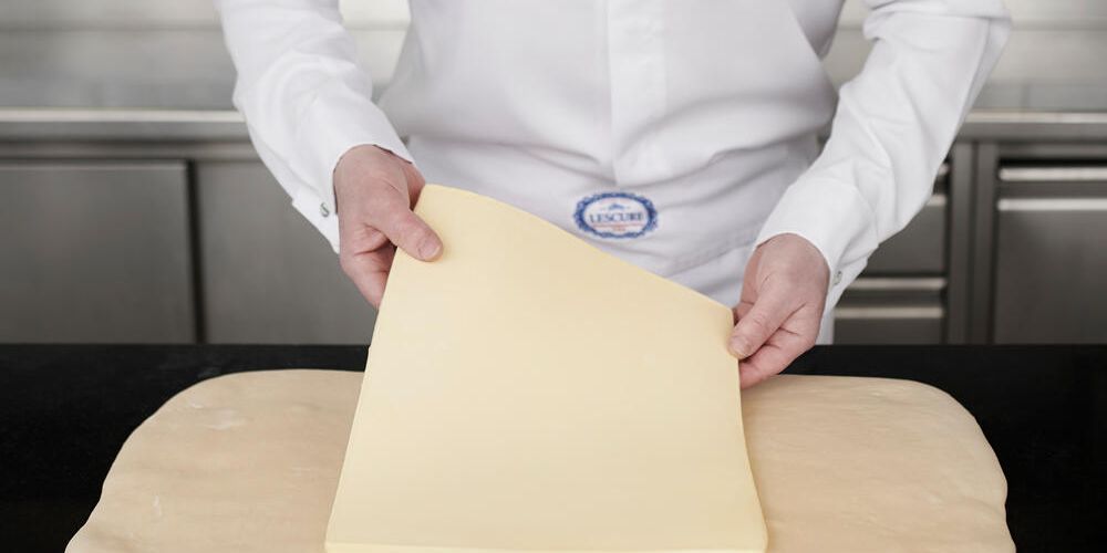 Le beurre Lescure a une très bonne élasticité pour la pâte, de sorte que lorsque nous procédons au laminage, il est très homogène et permet d'obtenir un très bon volume de la pâte et un beau feuilletage. Le beurre Lescure permet d’avoir un bon goût beurré avec une note de noisette, sans avoir un effet gras sur le produit.