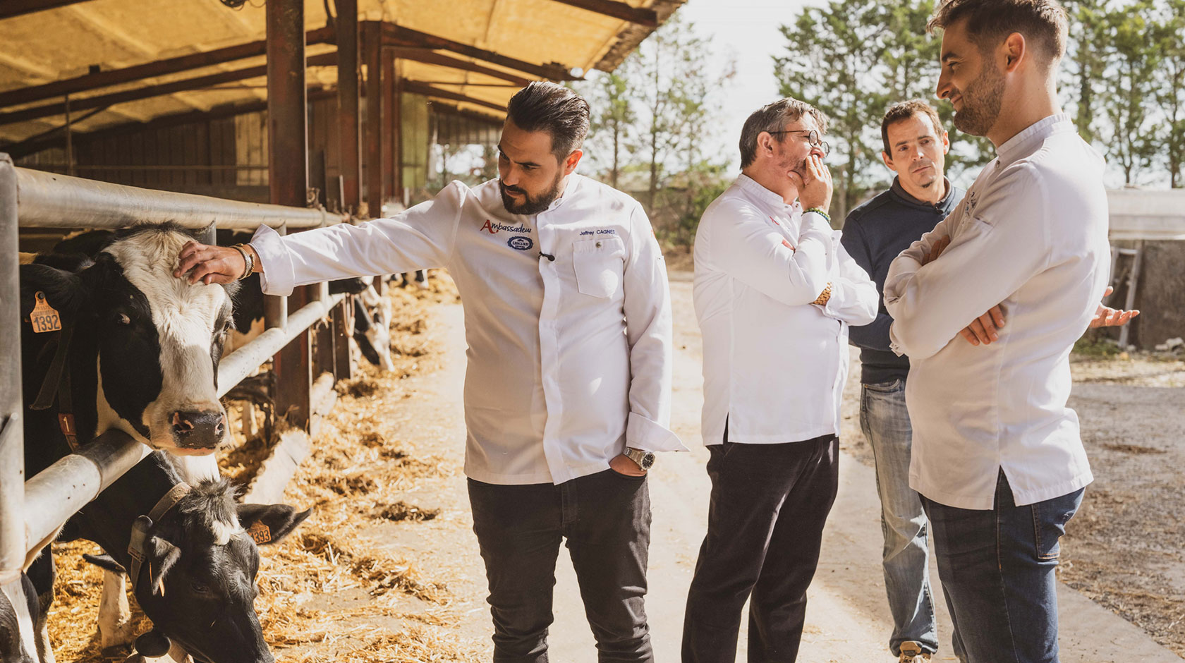 Accompagnés de Kevin Zwygart, Chef pâtissier à La Maison de l’Excellence, les Chefs Ambassadeurs Jeffrey Cagnes, Benoît Castel et Joaquin Soriano partent sur les terres d’origine de Lescure et des Hommes qui participent à l’élaboration de ce Beurre Charentes-Poitou AOP d’exception.