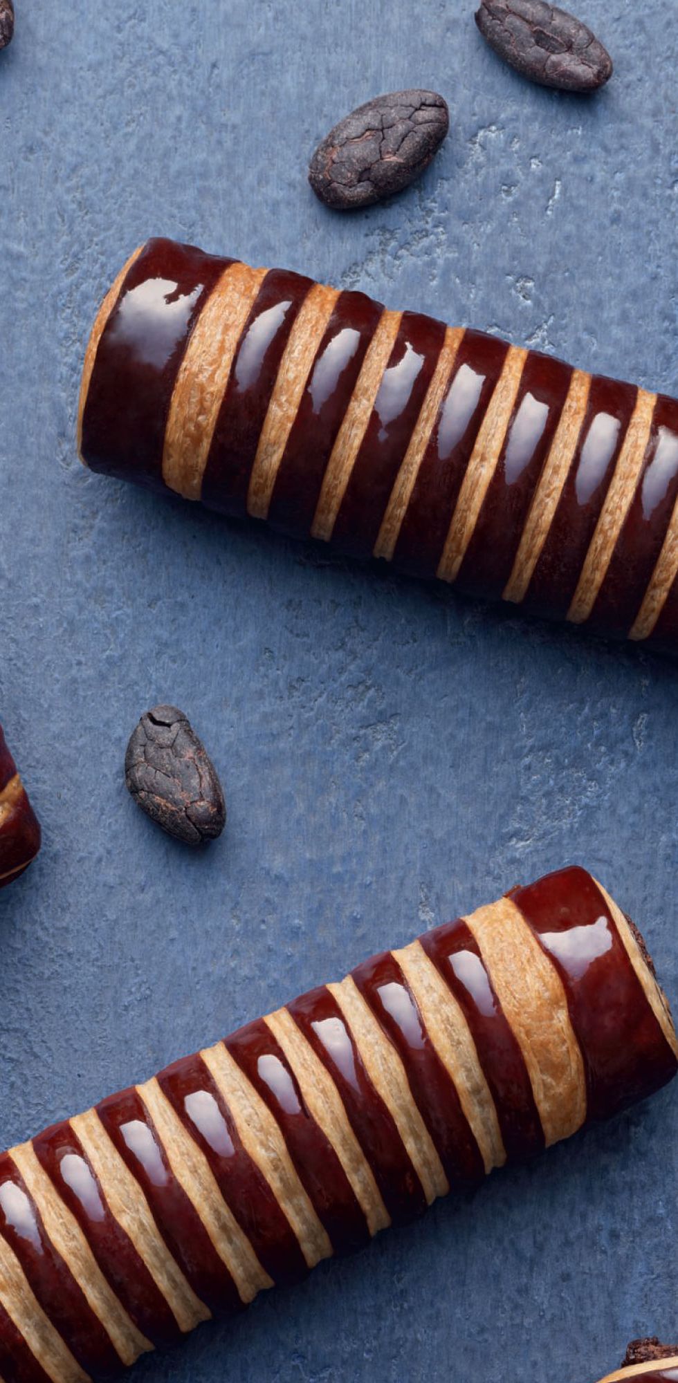 Bouler puis laisser pointer une heure. Rabattre la pâte et la mettre au froid. Réaliser avec le beurre plaque de tourage deux tours simples. Laisser reposer au froid. Déposer la pâte chocolat abaissée à 5 mm sur le pâton de pâte puis donner un 3ème tour simple. Étaler à 2 mm d’épaisseur.