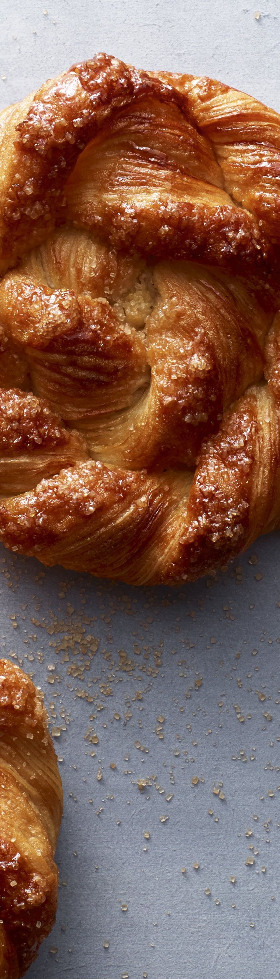 rouleau. Détailler des bandes de 30 cm sur 3 cm de largeur. Faire une incision à la moitié des 3 cm sur une longueur de 28 cm. Replier les 2 bandes sur elles mêmes puis vriller. Détailler en bandes de 14 cm et cuire dans un moule Silform® - Oblong Shape REF: SF 0004 Ou enrouler dans un moule Flexipan® florentins ref : 112 Faire pousser environ 2h à 25°C. Dorer et cuire à 165°C sur plaque pendant environ 17 minutes pour les sacristains enroulés et 12 minutes pour les sacristains vrillés. A chaud, glacer avec du sirop d’érable.Astuce de chefN’hésitez pas à utiliser des sucres différents comme la vergeoise ou le muscovado.